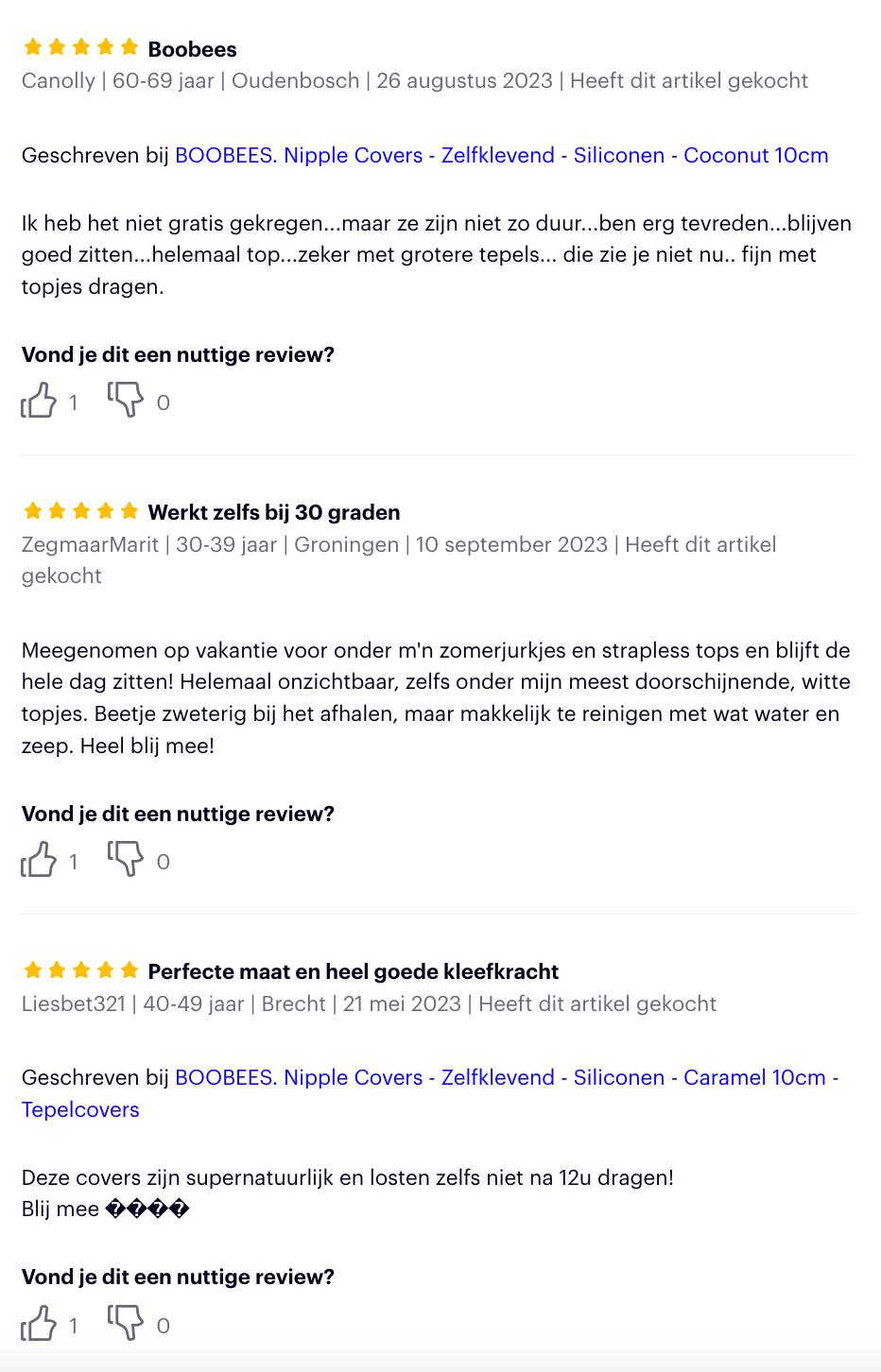 Ook op bol is BOOBEES actief. Met de select methode zijn je nipple covers voor 23:59 besteld, morgen in huis.